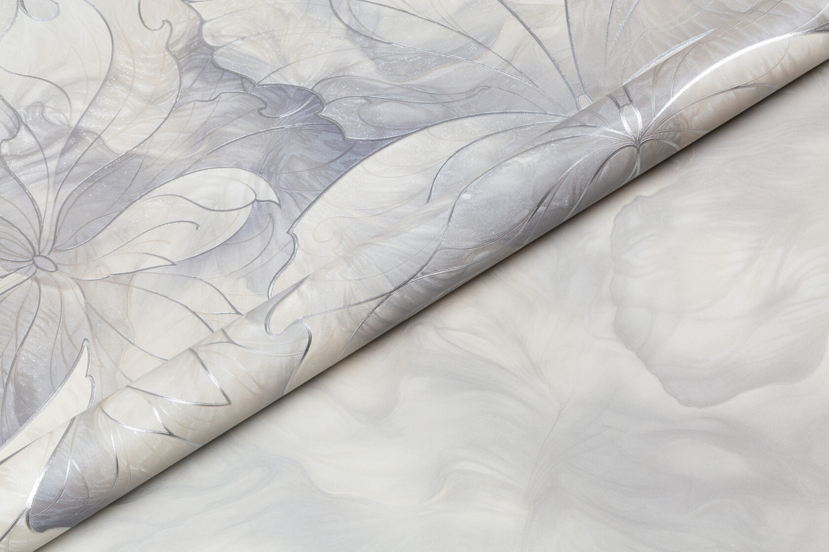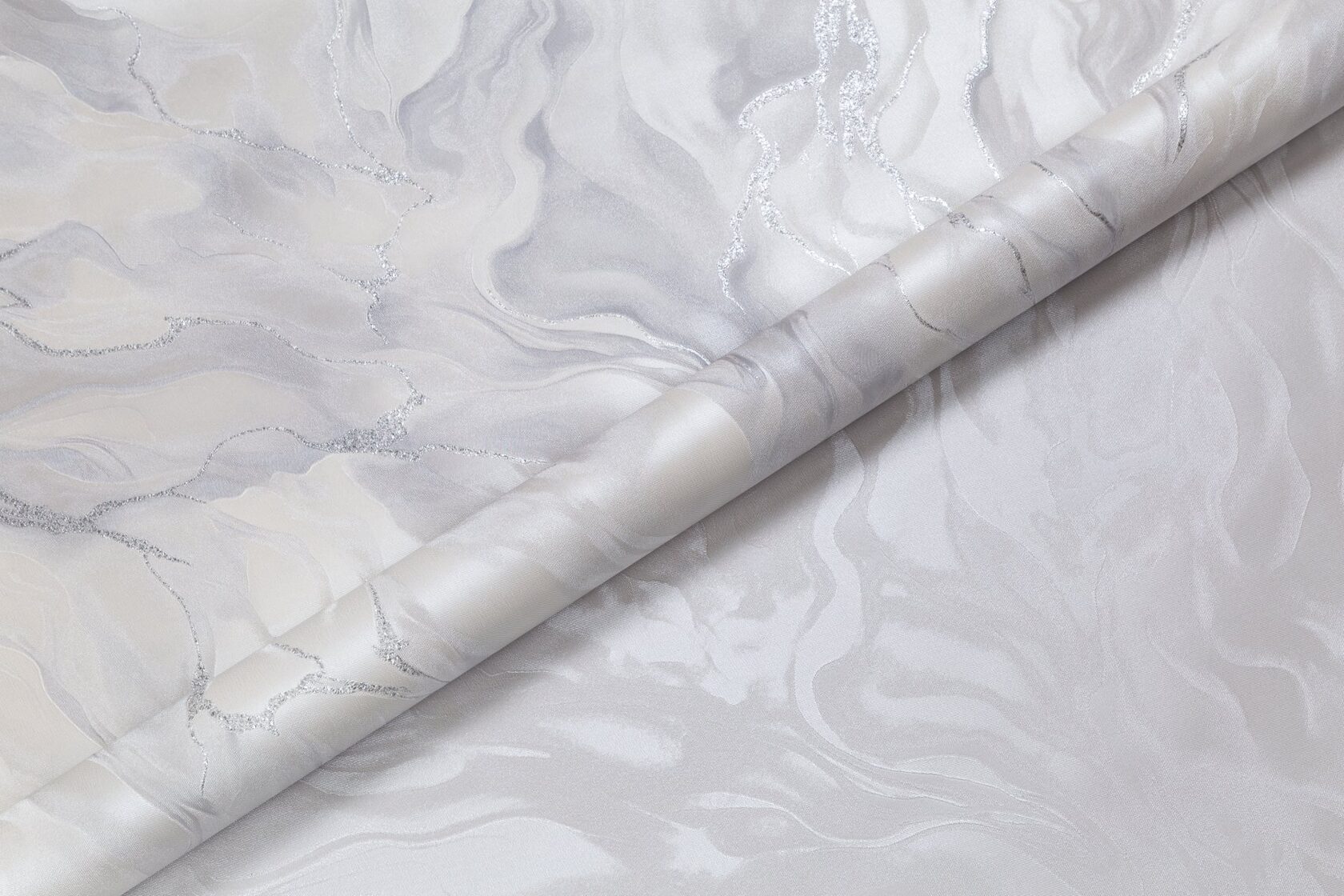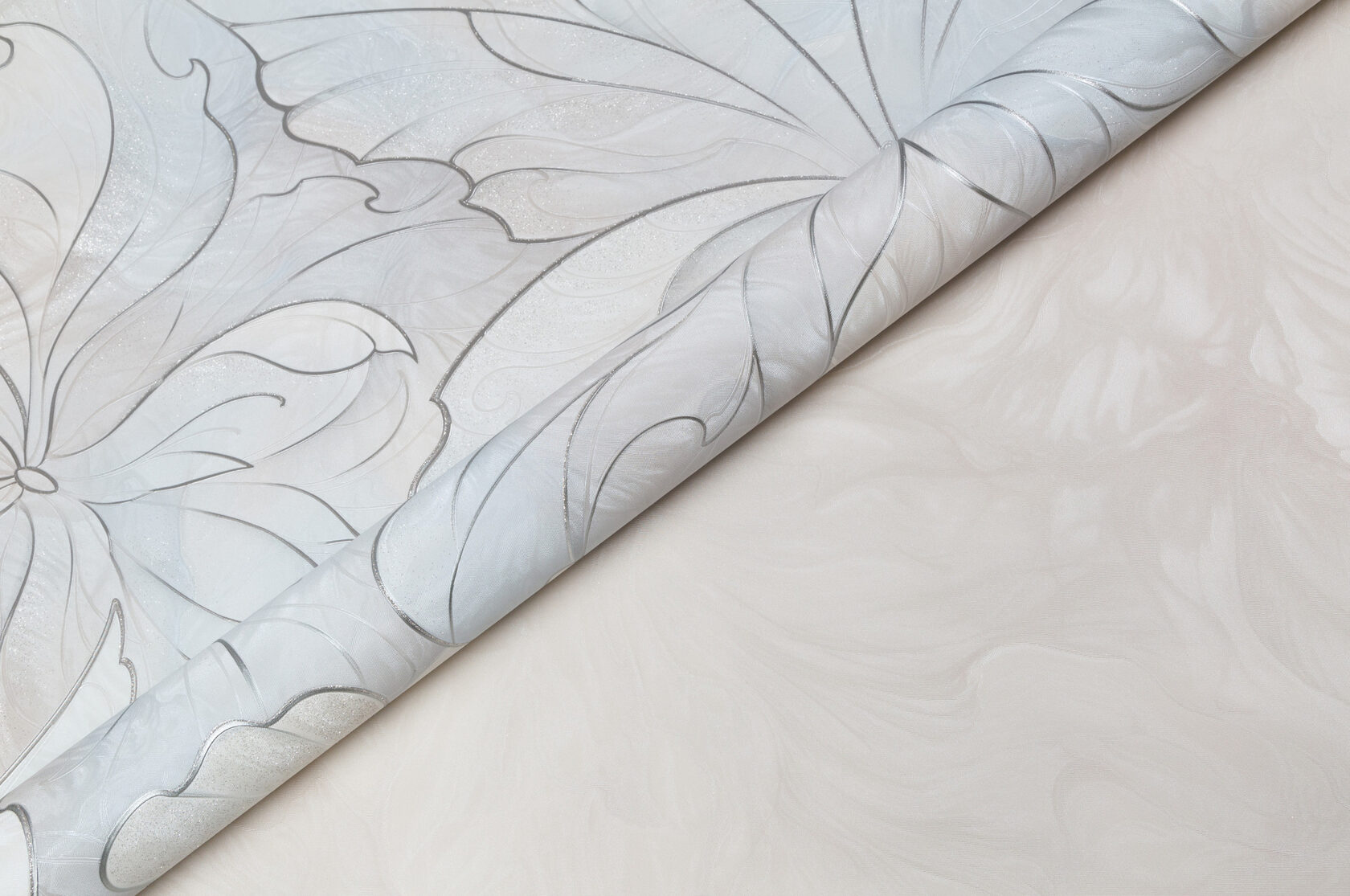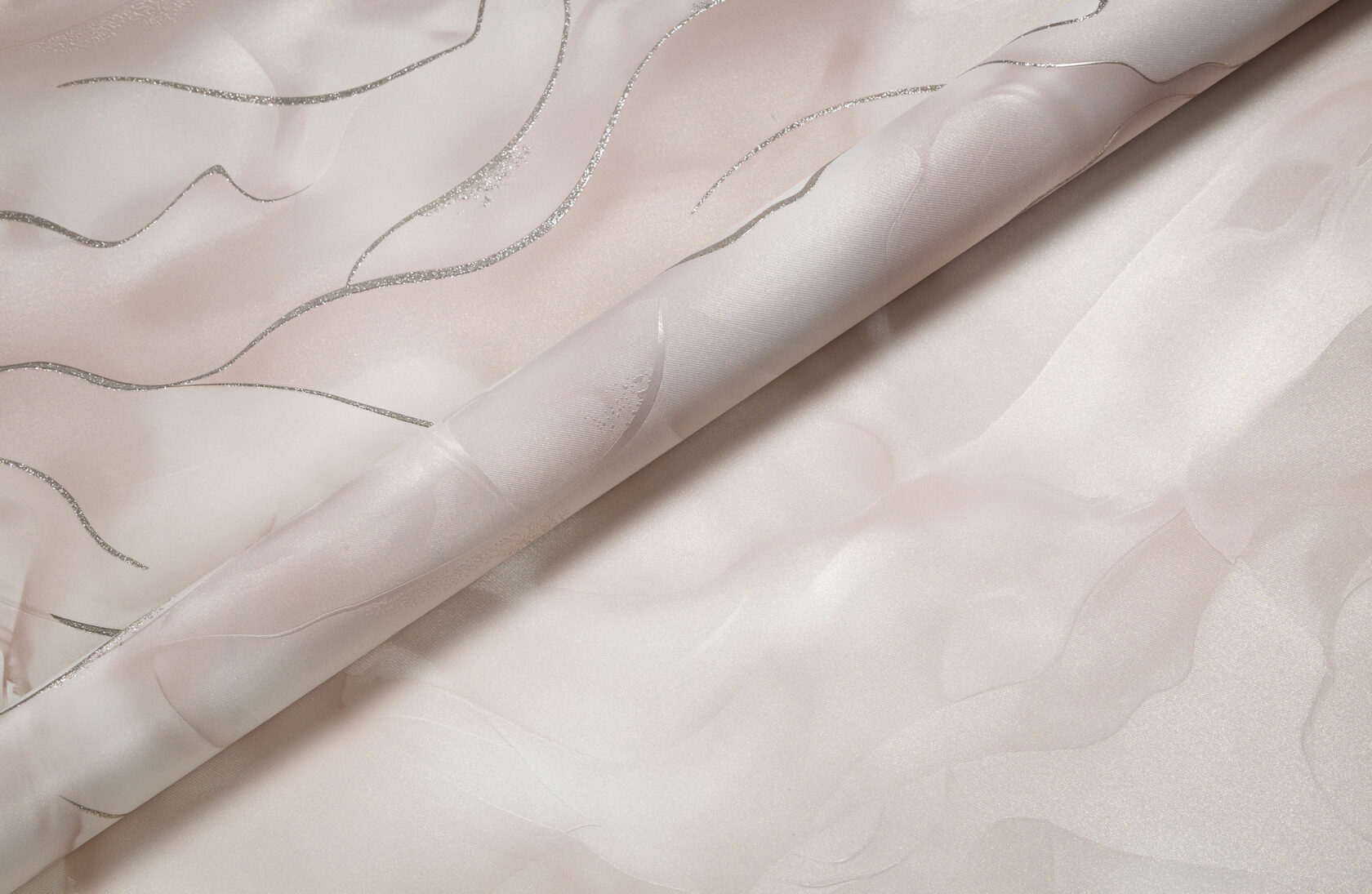 Мотив Znak vodoleya - это фактура струящегося шелка на обоях с деликатными переливами перламутра на мягких складках. Благодаря изящной игре света и контрастным полутонам на поверхности текучих шелковых волн, фактура кажется объемной.