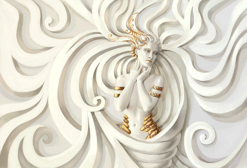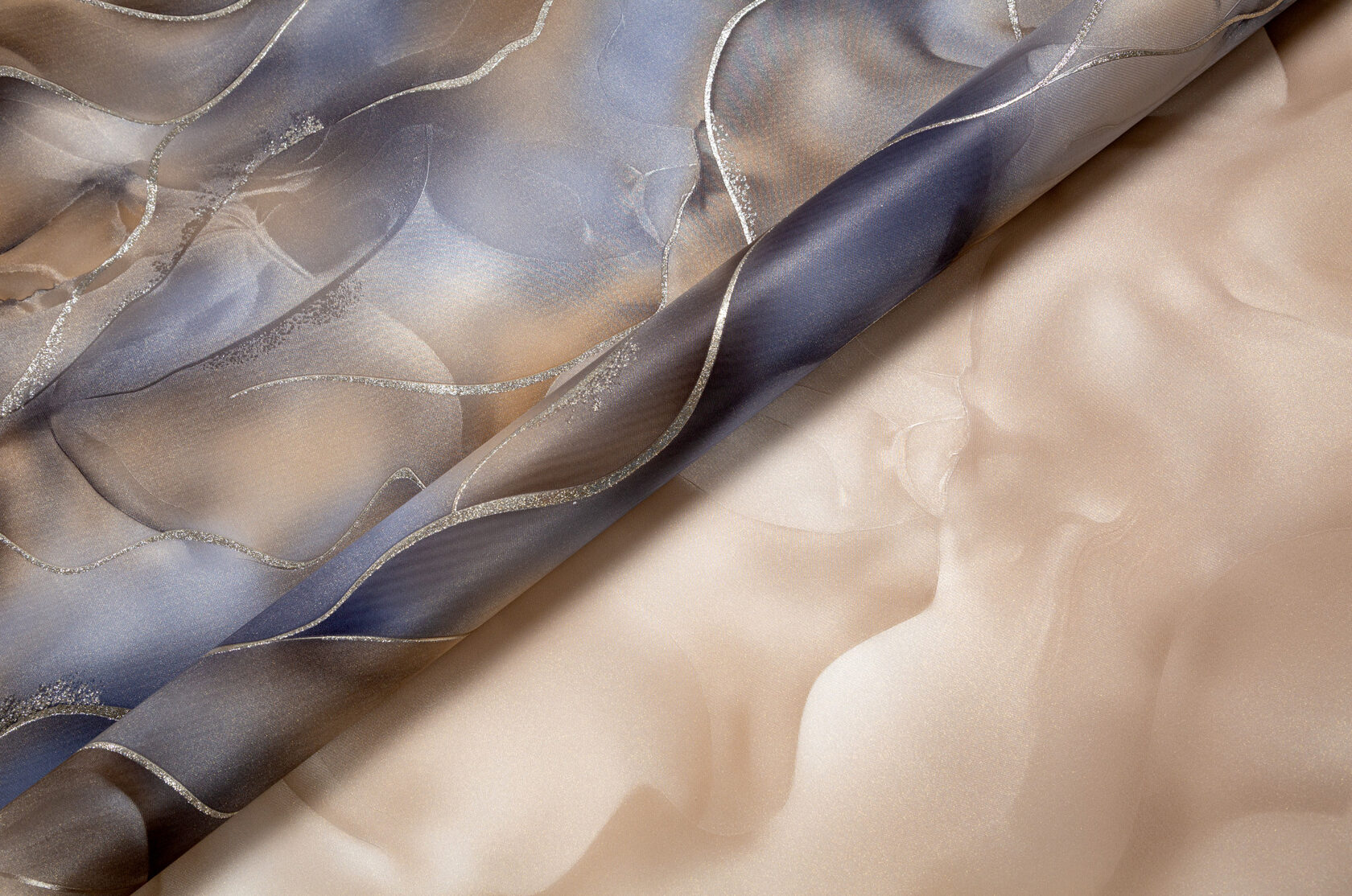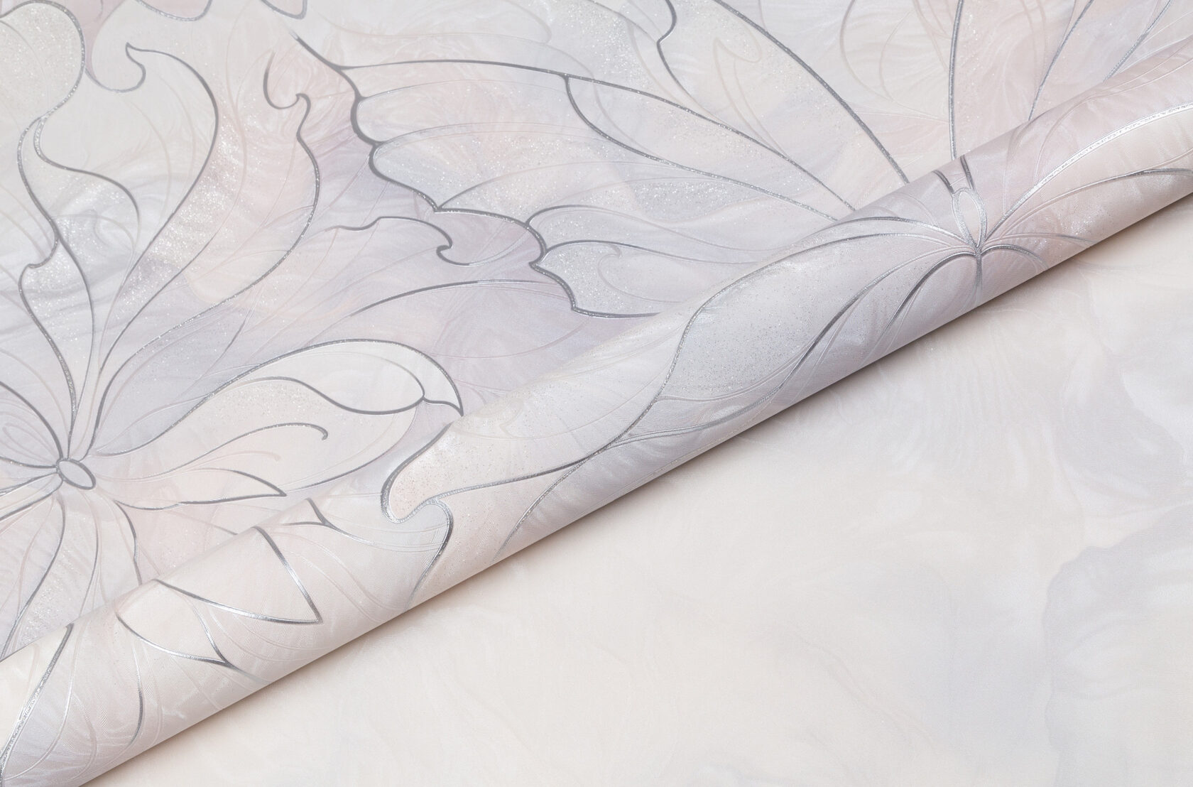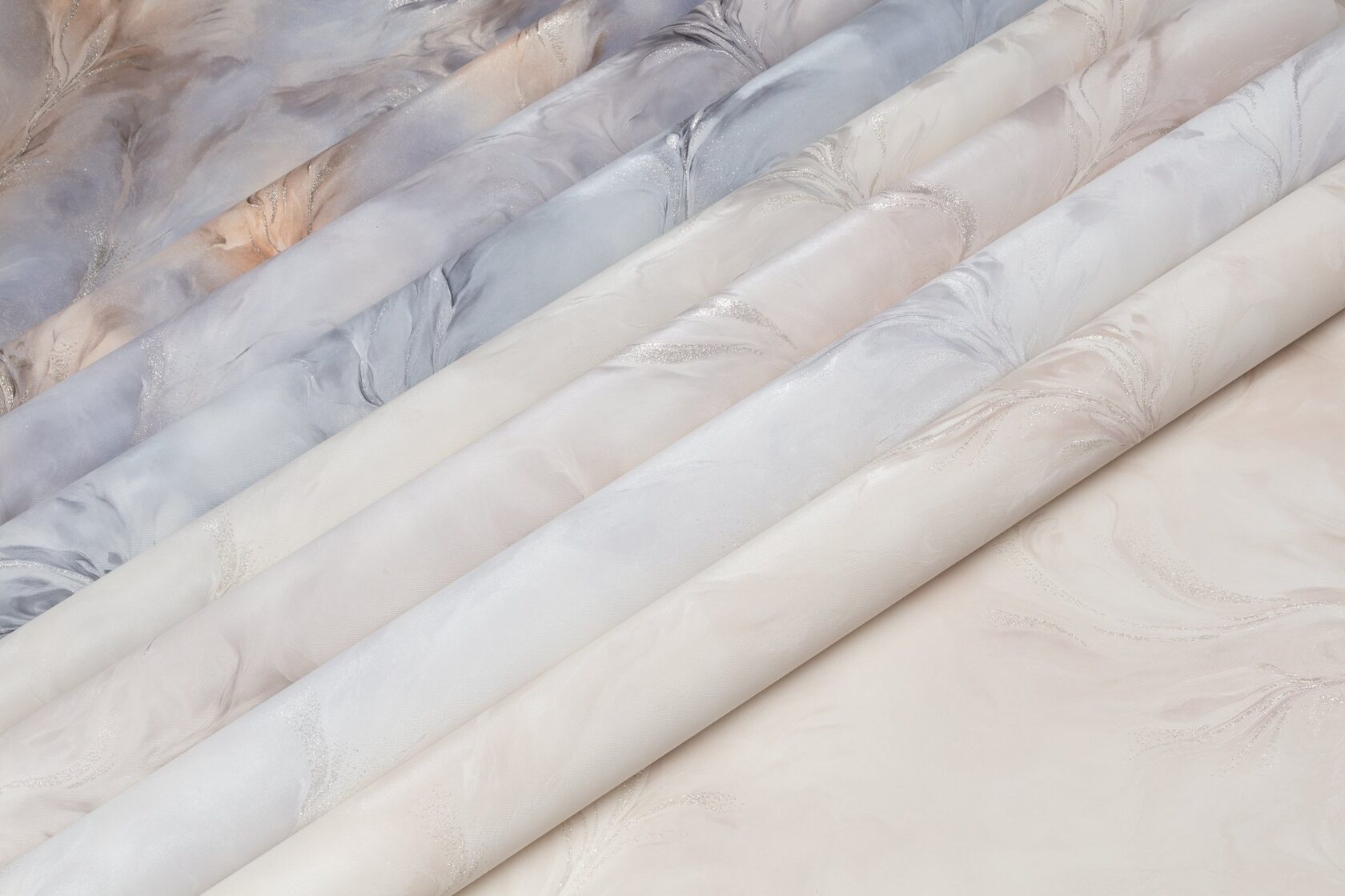 Мотив Znak vodoleya - это фактура струящегося шелка на обоях с деликатными переливами перламутра на мягких складках. Благодаря изящной игре света и контрастным полутонам на поверхности текучих шелковых волн, фактура кажется объемной.