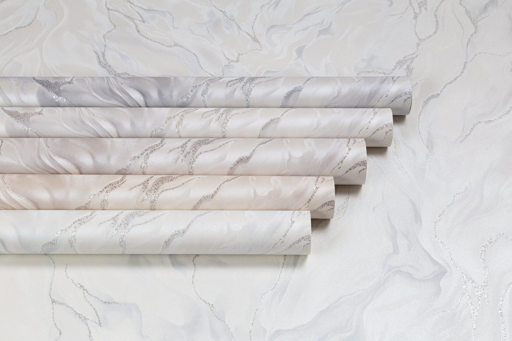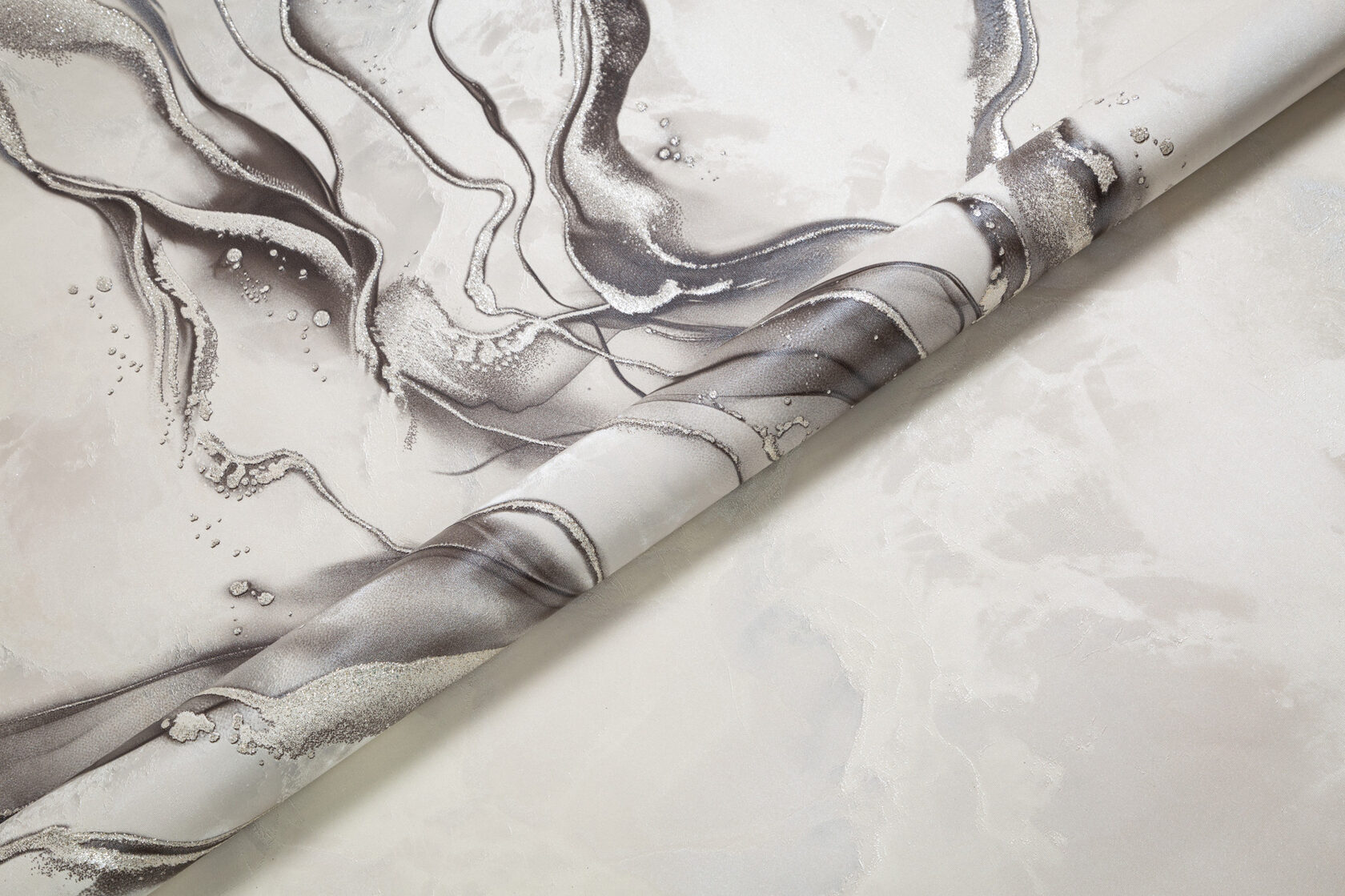 Завораживающие флюидные линии красочно растекаются, смешиваясь на прозрачной фактуре кристаллов кварца. В дымчатом мотиве обоев Arta сочетается прозрачный блеск природного камня и декоративные цветовые пятна, нанесенные кистью художника.